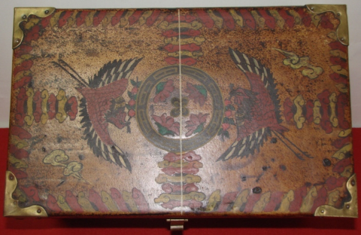 <³»¿ë> ¸ñÀçÇÔ Àüü¸é¿¡ °¡Á×À» ÀÔÈ÷°í ¹Ù´ÚÀ» Á¦¿ÜÇÑ 5¸é¿¡ ºÀȲ, ²É, ±¸¸§, ¼ÛÇÐ, Á×, ¸Å, ±«¼® µîÀÇ ±×¸²À¸·Î Àå½ÄÇÑ ÇÔÀÌ´Ù.