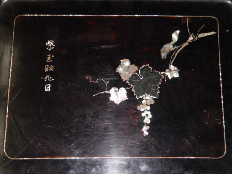 <³»¿ë> »óÆÇ¿¡ Æ÷µµ¹®(´Ù¶÷Áã)°ú ¹®ÀÚ, »ç¹æ ÃøÆÇ¿¡ È­¹® µîÀÌ Àß ¾î¿ï¸° »ç°¢ ³ªÀü ¼Ò¹ÝÀ¸·Î »óÅ´ ¾çÈ£ÇÏ´Ù.