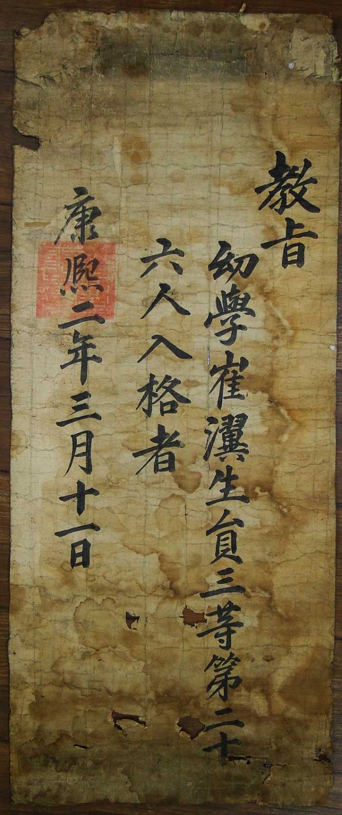 <³»¿ë> ˬý÷ì£Ò´(1625) ¿µ±¤(çÏÎÃ) °ÅÁÖ ÃÖÀÍ(õËìË)¿¡°Ô ¹ß±ÞµÈ »ý¿ø½Ã ÀÔ°ÝÁõ¼ÀÎ ¹éÆÐ(ÛÜø«) ±³Áö(Îçò©)·Î ¿©¹éºÎ ºÎºÐ ¼Õ»ó, ¾ó·è µîÀÌ ÀÖÀ¸³ª ³»¿ëÀº ¿ÂÀüÇÏ´Ù.