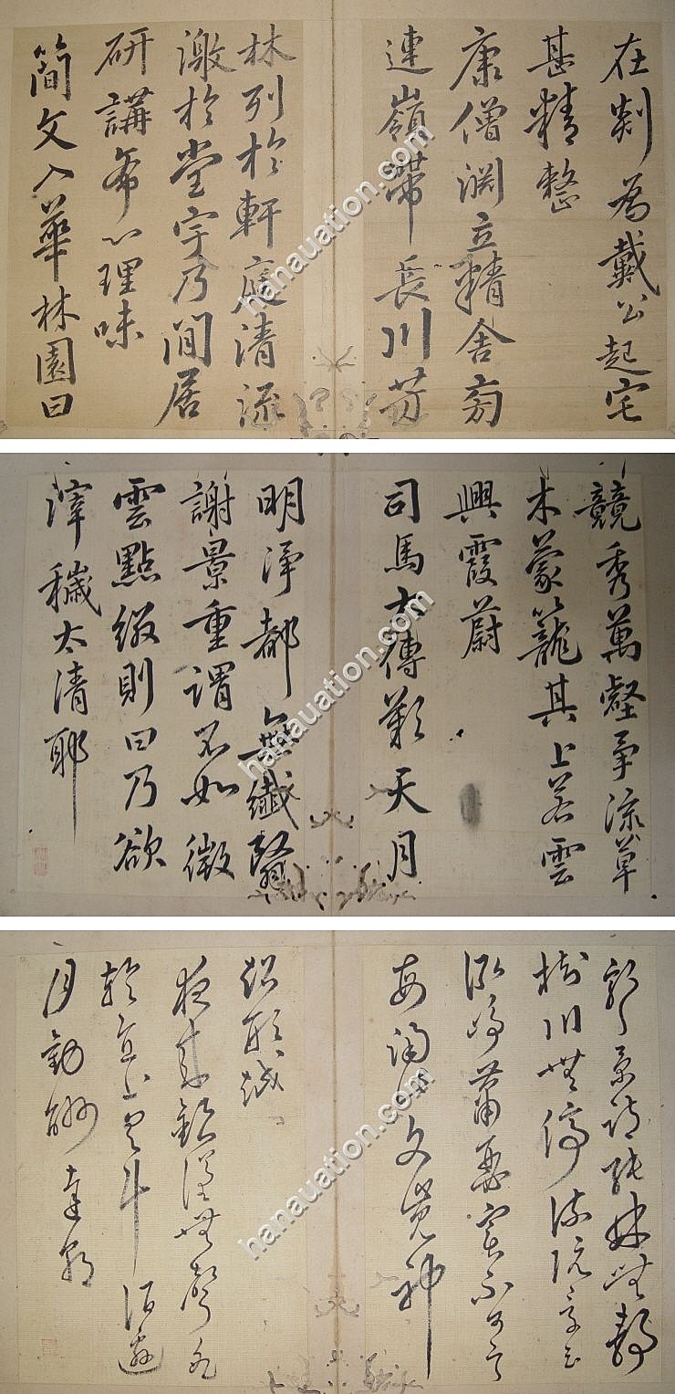 <³»¿ë> Á¤Á¶´ëÀÇ ¹®½ÅÀÌÀÚ ¸íÇʰ¡·Î °âÀç, ´Ü¿ø°ú ÇÔ²² Áø°æ¹®È¸¦ ÁÖµµÇÏ¿´´ø ¼ÛÇÏ(áæù») Á¶À±Çü(ðÆëÃúû) ¼±»ýÀÇ ¼Èø <Á¶°ø¹¬Èñ(ðÆÍëÙøýô)>À¸·Î Á¦1-2¸é¿¡ ³Ã±ÝÁö¿¡ ±×¸° <±«¼®³Á×µµ>¿Í ø º»¹®¿¡ °í¿î ¼¼°ß¿¡ ¹¬¼ÇÑ 14¸é ºÐ·®ÀÇ ±Û¾¾, ¸¶Áö¸· 2¸é¿¡ ³Ã±ÝÁö¿¡ ±×¸° <»ê¼öÈ>·Î ±¸¼ºµÇ¾î ÀÖ´Ù. ø ¿©¹éºÎ µî ÀϺΠÁ»¸ÔÀº °÷ ÀÖÀ¸³ª ÀÛǰ ¼Õ»óÀº ¹Ì¹ÌÇÏ´Ù. <Å©±â> 24.8¡¿38.8cm <Âü°í> ¨ç Á¶À±Çü(ðÆëÃúû) Á¶¼± Èı⠹®½Å. ÀÚ´Â Ä¡Çà(öÄú¼), È£´Â ¼ÛÇÏ¿Ë(áæù»èº). º»°üÀº â³ç(óãç¬). ¹®À½(Ú¦ëã)°ú ÇÐÇà(ùÊú¼)À¸·Î Ãßõ¹Þ¾Æ 1766³â(¿µÁ¶ 44) º½½±æ¿¡ ¿À¸¥ µÚ, ±Û¾¾¸¦ Àß ½á¼ ÀÏÂî±â ßöÞÐίÀ» ¿ªÀÓÇß´Ù. ¼±°ø°¨ÁֺΡ¤¿¹Á¶Á¤¶û¡¤¼±°ø°¨ºÎÁ¤(àËÍïÊøÜùïá)¡¤Ã¥·Êµµ°¨»ó·Ê(óüÖÉÔ´ÊøßÓÖÉ)¡¤¾È¾Ç±º¼ö¡¤È£Á¶ÂüÀÇ µîÀ» µÎ·ç Áö³»°í 1797³â(Á¤Á¶ 21) Áöµ·³çºÎ»ç(ò±ÔÄç¬Ý¤ÞÀ)°¡ µÇ¾ú´Ù. ±×¸²°ú ±Û¾¾¿¡ ´ÉÇߴµ¥, ±×¸²Àº Ç®¡¤´ë³ª¹« µîÀÇ ¹¬È¸¦ Àß ±×·ÈÀ¸¸ç, ±Û¾¾´Â Ãʼ¡¤¿¹¼¿¡ ƯÈ÷ ¶Ù¾î³ª ¸¹Àº À̵éÀÌ ±×ÀÇ ±Û¾¾¸¦ ¾ò°íÀÚ ÇÏ¿´´Ù°í ÇÑ´Ù. ¡¶À¯Á¡»çdz¾Ç´ç´ë»çºñ(êøïÀÞÑù£äÀÓÑÓÞÞÔÝø)¡· ¡¶¿ëÈïÀáÀú°íÁ¤±â(éÌýéíÖîÐͯïÌÑÀ)¡· µîÀÇ À¯¹¬(ë¶Ùø)ÀÌ ÀüÇÑ´Ù. ¨è Á¶À±Çü(ðÆëÃúû) °ü·Ã±â»ç [Çмú] 'Áø°æ¼¿¹' Áø¼ö¸¦ ¸Àº»´Ù ±Û¾¾¿Í ±×¸²Àº Á¤Á¶ ¶§ È·ÁÇÏ°Ô ²ÉÇÉ Á¶¼±Èıâ Áø°æ¹®ÈÀÇ ½Öº®À¸·Î ²ÅÈù´Ù. ƯÈ÷ ½Ã¼È¶ó´Â ¸»Ã³·³ ¼¿¹´Â ±×¸²º¸´Ù ¾Õ¼± ÀÚ¸®¿¡ ³õÀÎ ´ç½Ã Áö½ÄÀÎ ¹®ÈÀÇ Á¤¼ö¿´À¸³ª ¿À´Ã³¯¿£ ¿¬±¸ÀÚ°¡ °ÅÀÇ Àü¹«ÇÒ Á¤µµ·Î Á¶¶ôÇØ¹ö·È´Ù. Á¤¼±, ±èÈ«µµÀÇ ±×¸²À» Áø°æ¹®ÈÀÇ ´ë¸í»ç·Î ²Å´Â À̵éÀº ¸¹¾Æµµ ¶Ç´Ù¸¥ Àϰ¡¸¦ ÀÌ·é ¼¿¹°¡µé¿¡°Ô ħ¹¬ÇÒ ¼ö¹Û¿¡ ¾ø´Â °ÍÀº ¼¿¹¸¦ Ãë¹ÌÁ¤µµ·Î »ý°¢ÇÏ´Â ¿ËÁ¹ÇÑ ¹®ÈdzÅä¿Íµµ ¿¬°üÀÌ ÀÖÁö ¾ÊÀ»±î? ÇÑ½Å´ë ¹Ú¹°°üÀÌ Áö³ 14ÀϺÎÅÍ ¼¿ï ¿¹¼úÀÇÀü´ç ¹Ì¼ú°ü Á¦2Àü½Ã½Ç¿¡¼ ¿°í ÀÖ´Â `Á¤Á¶´ë¿Õ ¼°Å 200ÁÖ±â Ã߸ðÀü'ÀÇ ¼ûÀº ¸Å·ÂÀº ÀÌó·³ ¹¯Çû´ø Áø°æ¼¿¹ÀÇ º¹±ÇÀ̶ó´Â ¹Ø±×¸²¿¡¼ ³ª¿Â´Ù. ¼¿¹°¡ ´ç´ë Áø°æ¹®ÈÀÇ °¡Àå ¹Î°¨ÇÑ ÁöÁ¡¿¡ ³õ¿©ÀÖ´Ù´Â ÇÙ½ÉÀ» °£ÆÄÇØ Àü½Ã¸¦ ±âȹÇß´Ù´Â Á¡À» Æò°¡ÇÒ ¸¸ÇÏ´Ù. º®À» ¸Þ¿î Á¤Á¶¾îÇʰú ´ç´ë ¹®Àå°¡µéÀÇ Å¹º»±Û¾¾µéÀº ¶§·Î´Â ¼Ã¼ÀÇ À̹ÌÁö¿Í ±Û¿¡ ¼ûÀº ½¢ÇÑ ³»·ÂµéÀ» ÅëÇØ »ý»ýÇÏ°Ô Áø°æ¹®ÈÀÇ Áø¸é¸ñÀ» ¾Ï½ÃÇϰí ÀÖ´Ù. ¿©·¯ ±Û¾¾ÀÇ ÁÖÀΰøµé °¡¿îµ¥ °¡Àå ÀÚÃë°¡ ºÎ°¢µÇ´Â Àι°Àº Á¤Á¶°¡ °¡Àå ÃѾÖÇß´Ù´Â ¼¿¹°¡ ¼ÛÇÏ Á¶À±Çü(1725~1799)ÀÌ´Ù. ±×´Â ¿Áµ¿ À̼¿Í ¹éÇÏ À±¼ø, ¿ø±³ À̱¤»ç¸¦ À̾î¹Þ¾Æ µ¿±¹ÁøÃ¼¶ó´Â Áø°æ½Ã´ë ±Û¾¾¸¦ ºû³½ ´ë°¡´Ù. ±×¸²¿¡ Á¤¼±°ú ±èÈ«µµ°¡ ÀÖ´Ù¸é ±Û¾¾¿¡´Â Á¶À±ÇüÀÌ ÀÖ´Ù´Â Àü·¡ÀÇ À̾߱â´Â ±Û¾¾Ã¼ÀÇ ´Ù±âÇÑ º¯È¿Í °·ÄÇÑ ¹®Çâ(ÙþúÅ)À» ÅëÇØ ÁüÀÛÇÏ°íµµ ³²À½ÀÌ ÀÖ´Ù. Áß±¹ÀÇ Àü¼´ë°¡ À̾çºùÀÇ ±Û¾¾Ã¼·Î ¾´ `È«¸¸Èñ ¹¦°¥'ÀÇ Àü¾×ÀÌ ¿ÜÀ¯³»°ÇüÀ̶ó¸é ´ëÇ¥ÀÛÀÎ `ÀÌÇÊÁß ¹¦°¥'¿¡¼´Â Ä®³¯Ã³·³ ±º´õ´õ±â ¾ø°í ¸»¾¦ÇÑ À¯°ø±ÇüÀÇ °ñ±â°¡ ¹è¾îÀÖ¾î ¿©·¯ ±Û¾¾Ã¼¸¦ ¼··ÆÇÑ ÇÊ·ÂÀÇ ºñ¹üÇÔÀÌ ´À²¸Áø´Ù. °æ±âµµ ¾È¾çÀÇ µ¹´Ù¸® Ã༺ ±â³äºñÀÎ `¸¸¾È±³ºñ'ÀÇ È°´ÞÇÑ ÇÊü¿¡´Â ÀÓ±ÝÀÇ ¾Ö¹Î»ç»ó¿¡ ´ëÇÑ ´À²¨¿î °¨ÈïÀÌ, `´ë¿ø´ç ´ë¼±»çºñ'´Â Ãʼ¿¡ °¡±õ°Ô Èê·Á¾´ ÇÊü°¡ ²à²àÇÑ ±â¸Æ°ú ¾î¿ï·Á Áø°æ½Ã´ë¸¦ È£ÈíÇÑ ´ë°¡ÀÇ ¸é¸ð¸¦ ÀüÇϰí ÀÖ´Ù. -ÇÏ·«- ³ëÇü¼® ±âÀÚ