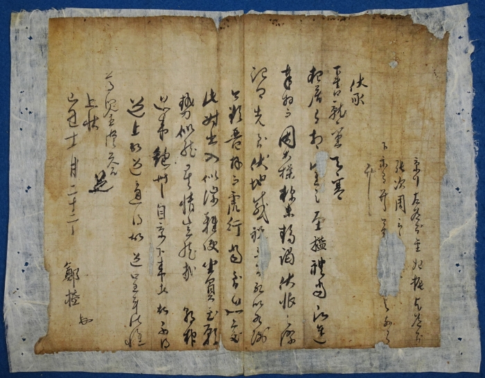 <³»¿ë> µµ½ÂÁö, ÇѼººÎÆÇÀ±, ÇüÁ¶ÆÇ¼, ¿ìÂüÂù µîÀ» µÎ·ç ¿ªÀÓÇÑ Á¤ÀÍ(ï÷榏. 1617~1683) ¼±»ýÀÇ ÐùõäÒ´(1649)Ò´ °£Âû·Î ¾à°£ÀÇ ºÎºÐ ¼Õ»ó, Àü¹ÝÀû ¾ó·èÀÌ ÀÖ´Ù.(¹èÁ¢ÇÔ) <Å©±â> 35.5¡¿30cm <Âü°í> Á¤ÀÍ(ï÷榏. 1617~1683) Á¶¼± Èı⠹®½Å. º»°üÀº ÇØÁÖ(úñ¶)ÀÌ´Ù. ÀÚ´Â ÀÚÁ¦(íð)À̰í, È£´Â ¿íÇå(éïúÍ)ÀÌ´Ù. ÇØÇ³±º(úù¥ÏÖ) Á¤È¿ÁØ(ï÷üøñÕ)ÀÇ ¾Æµé·Î ž´Ù. 1639³â(ÀÎÁ¶ 17) »ç¸¶½Ã¿¡¼ »ý¿ø 3µîÀ¸·Î ÇÕ°ÝÇϰí, 1642³â ½Ä³â¹®°ú¿¡¼ º´°ú·Î ±ÞÁ¦ÇÏ¿´´Ù. 1652³â ÁöÆò¡¤Á¤¾ð µîÀ» Áö³»°í 1656³â Çʼ±À» °ÅÃÄ À̵ëÇØ Àå·É¿¡ Á¦¼öµÇ¾ú´Ù. 1659³â Çå³³ÀÌ µÇ¾ú´Ù°¡ ±×ÇØ ÇöÁ¾ ÁïÀ§ ÈÄ °íºÎÁ¤»ç(ͱݵïáÞÅ)ÀÇ ¼Àå°üÀÌ µÇ¾î Áß±¹¿¡ ´Ù³à¿Ô´Ù. 1660³â ¿ìºÎ½ÂÁö¡¤µ¿ºÎ½ÂÁö µîÀ» ¿ªÀÓÇϰí, 1670³â(ÇöÁ¾ 11) ¿¹Á¶ÂüÀÇ¿¡ ÀÓ¸íµÇ¾úÀ¸¸ç ±×ÇØ »çÀººÎ»ç°¡ µÇ¾î ´Ù½Ã Áß±¹¿¡ ´Ù³à¿Ô´Ù. ÀÌÈÄ È£Á¶ÂüÆÇ¡¤ÇüÁ¶ÂüÆÇ¡¤°ÈÀ¯¼ö¡¤µµ½ÂÁö¡¤ÇѼººÎÆÇÀ±¡¤ÇüÁ¶ÆÇ¼¡¤¿ìÂüÂù µîÀ» µÎ·ç ¿ªÀÓÇÏ¿´À¸³ª, 1680³â(¼÷Á¾ 6) °æ½Åȯ±¹(ÌÒãéüµÏÑ)À¸·Î ³²ÀÎÀÌ ´ë°Å ½Ç°¢ÇÒ ¶§ ¿µ´öÀ¸·Î À¯¹èµÇ¾ú´Ù°¡ 2³â ÈÄ Ç®·Á³µ´Ù.